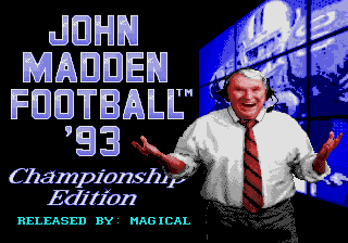 John Madden Football 93 - Championship Edition is identical to its precursor (John Madden Football 93) in almost every feature save one - it also includes the eight greatest NFL teams up to that time, so now you can relive classic matchups or try out your favorite what-if scenarios - this was a Blockbuster videogame rental exclusive. |