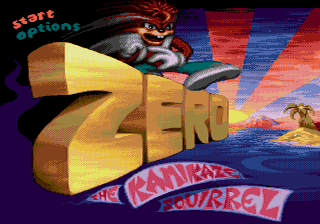 Probably the most concerted effort by a software house in cloning the success of the Sonic series. Gets old fast, ridiculous in places, but you never lack for action. I'm told that these games sold by the bucketful when they were first released, so Sunsoft's stratagem must have worked. In Zero the Kamikaze Squirrel, a spinoff from the Aero the Acrobat games, Zero gets the chance to play hero for a change - the best of the series, it compares well with the original Sonic in its own way. |