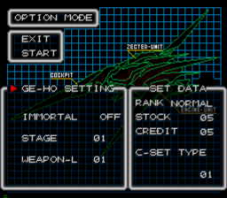 To activate the cheat mode, press: Up, B, A, C, A, Down, B, A, C, A. whilst on the title screen. (see right) You will hear a noise if the cheat has been entered properly. |