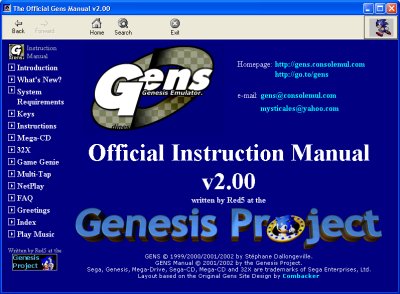 This comes in the form of an e-book (a self contained exe file), it is NOT browser dependent and should work on any Win9x installation. Just place it anywhere on your hard-drive, the Gens directory might be a good idea for example, and double-click to start. It contains all the text from Stef's original instructions and much more....