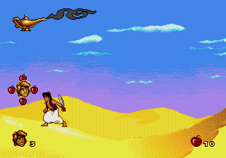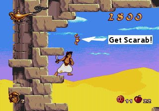 When you enter the Desert, run until you get past the first palm tree, then run back to the beginning of the level. An extra life should appear. (see right). |