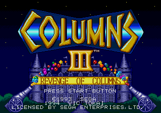 This has a more serious atmosphere than most puzzle games, and the graphics are beginning to show their age. Great gameplay, though. Columns 3 - Revenge of Columns, aka Super Columns - minor improvements throughout and a brief stab at plot ala Puyo Puyo. If you are wondering about Columns 2 it does not exist for the Sega Genesis. |
