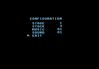 Choose from which level to start on, number of lives and music tests.