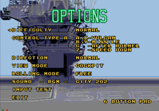 On the Options screen, set View Mode to Cockpit and Rolling Mode to Free as sown on the right. Once you start the game turn your afterburners on full and turn your plane to roughly 45° as shown below-right.