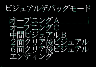 Play the game with your name entered as "FOMA". A menu with Japanese text will appear. This allows you to select a cut-scene animation to watch. |